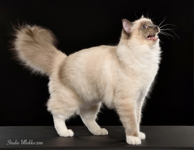 Nugetti on nuori kolli, kova poika juttelemaan ja aina kaikessa mukana. Tuoreimpiin harrastuksiin kuuluu lavuaarissa makoilu ja hanasta juominen (meidän muut kissat ei tätä harrasta). Tämän pojan kanssa kierrämme jonkin verran näyttelyissä.